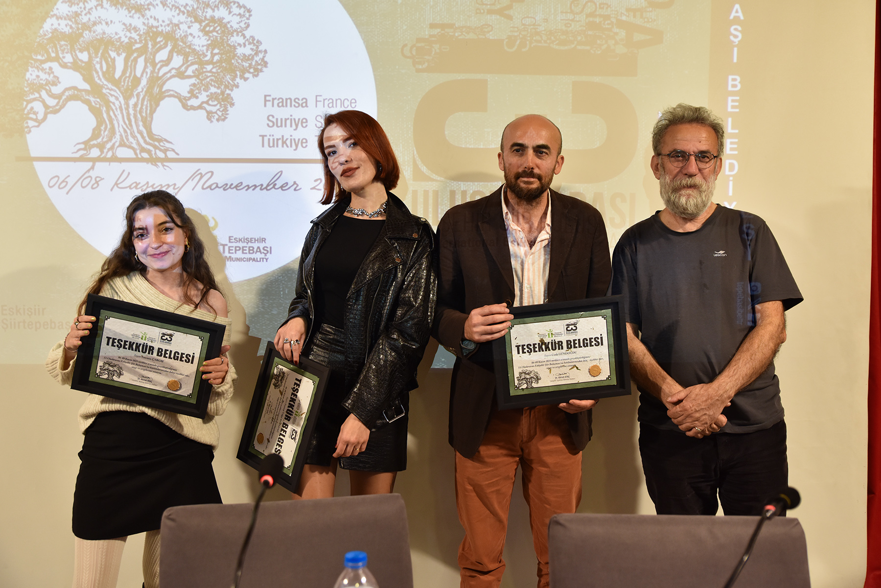 Oturumun sonunda Uluslararası Eskişehir Pişmiş Toprak Sempozyumu Sanat Direktörü Prof. Bilgehan Uzuner tarafından Uluslararası Eskişehir Şiir Buluşması Direktörü Haydar Ergülen’e kendi çizdiği Eskişehir tren garının resmini hediye etti.