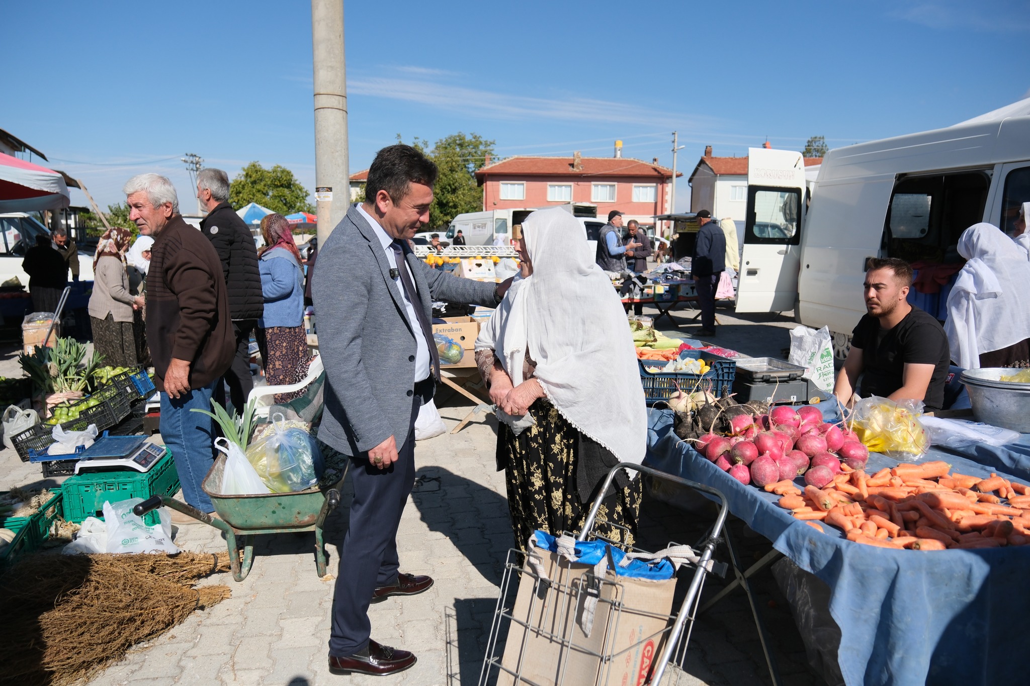 Ziyaret sırasında vatandaşlarla yakından ilgilenen Başkan Dökmeci, yerel üreticilerin ve pazar esnafının ilçe ekonomisindeki önemine dikkat çekti.