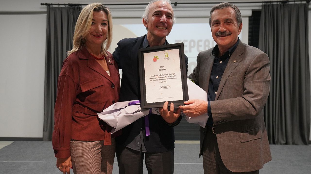 Söyleşinin sonunda Başkan Ataç, Çapa’ya teşekkür belgesi takdim etti.
