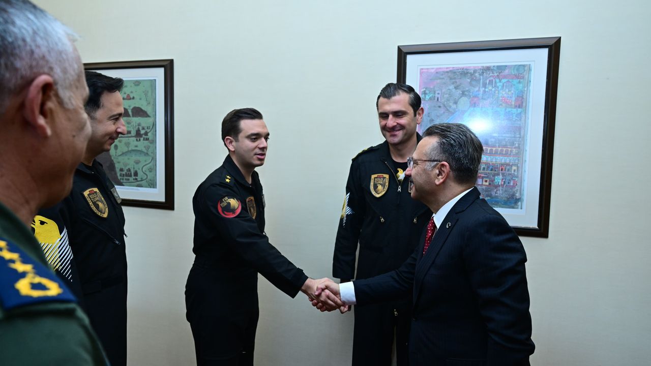 Ziyarette Solo Türk ekibi, yürütülen faaliyetler ve gerçekleştirilen uçuş gösterileri hakkında Vali Aksoy’a bilgi verdi.