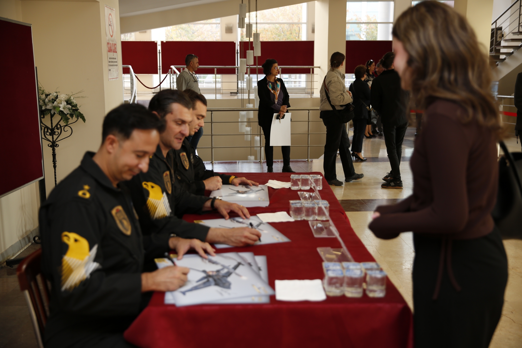 Açılış konuşmasının ardından SOLOTÜRK ekip lideri ve 1. gösteri pilotu Hv. Plt. Yb. Murat Bakıcı ve 2. gösteri pilotu Hv. Plt. Bnb. M. Erhan Aydemir sunumlarını gerçekleştirirken, SOLOTÜRK Basın ve Halkla İlişkiler ekibinden Hv. Ütğm. Alper Şen de etkinliğe katıldı. Kendilerini tanıtan pilotlar sonrasında SOLOTÜRK ekibi, SOLOTÜRK uçağının özellikleri ve tasarımı, gösterilerde sergiledikleri hareketler ve nasıl SOLOTÜRK pilotu olunabileceği hakkında bilgiler verdiler. SOLOTÜRK’ün Türkiye Cumhuriyeti devletinin gücünü gösterdiğini vurgulayan Hv. Plt. Yb. Murat Bakıcı, SOLOTÜRK gösteri ekibinin pilotlarının aktif savaş pilotu olmasıyla dünyadaki benzerlerinden ayrıldığını kaydetti. Hv. Plt. Yb. Murat Bakıcı dünyanın her tarafına gösteriler sergilemek için gittiklerini ve oralardaki özgüvenlerinin ve maneviyatlarının asil Türk milletini temsil etmekten geldiğini ifade etti. Soru-cevap bölümü ve teşekkür belgesi takdimi ile tamamlanan söyleşinin ardından, Hv. Plt. Yb. Murat Bakıcı, Hv. Plt. Bnb. M. Erhan Aydemir ve Hv. Ütğm. Alper Şen fuaye alanında ESOGÜ öğrencileri ile imza etkinliğinde bir araya geldi.