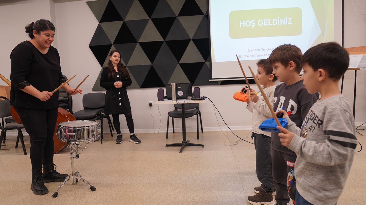 Ziyaret sırasında öğrenciler, Tepebaşı Belediyesi İki Elin Sesi Var Çocuk Senfoni Orkestrası yetkililerinden enstrümanlar hakkında bilgi aldı. Çocuklar, farklı müzik aletlerini inceleyerek merak ettikleri soruları sorma fırsatı buldu.