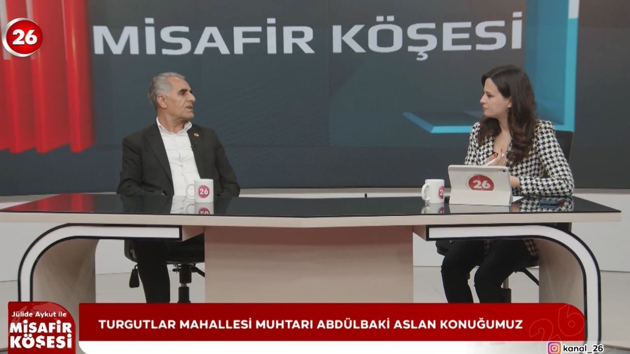“Misafir Köşesi – Söz Mahallelerde” programının bu haftaki konuğu, Turgutlar Mahallesi Muhtarı Abdülbaki Aslan oldu. Programda mahallenin öncelikli sorunlarını ve çözüm bekleyen taleplerini gündeme taşıyan Muhtar Aslan, mahalle sakinlerinin yaşadığı temel ihtiyaç eksikliklerine dikkat çekti.