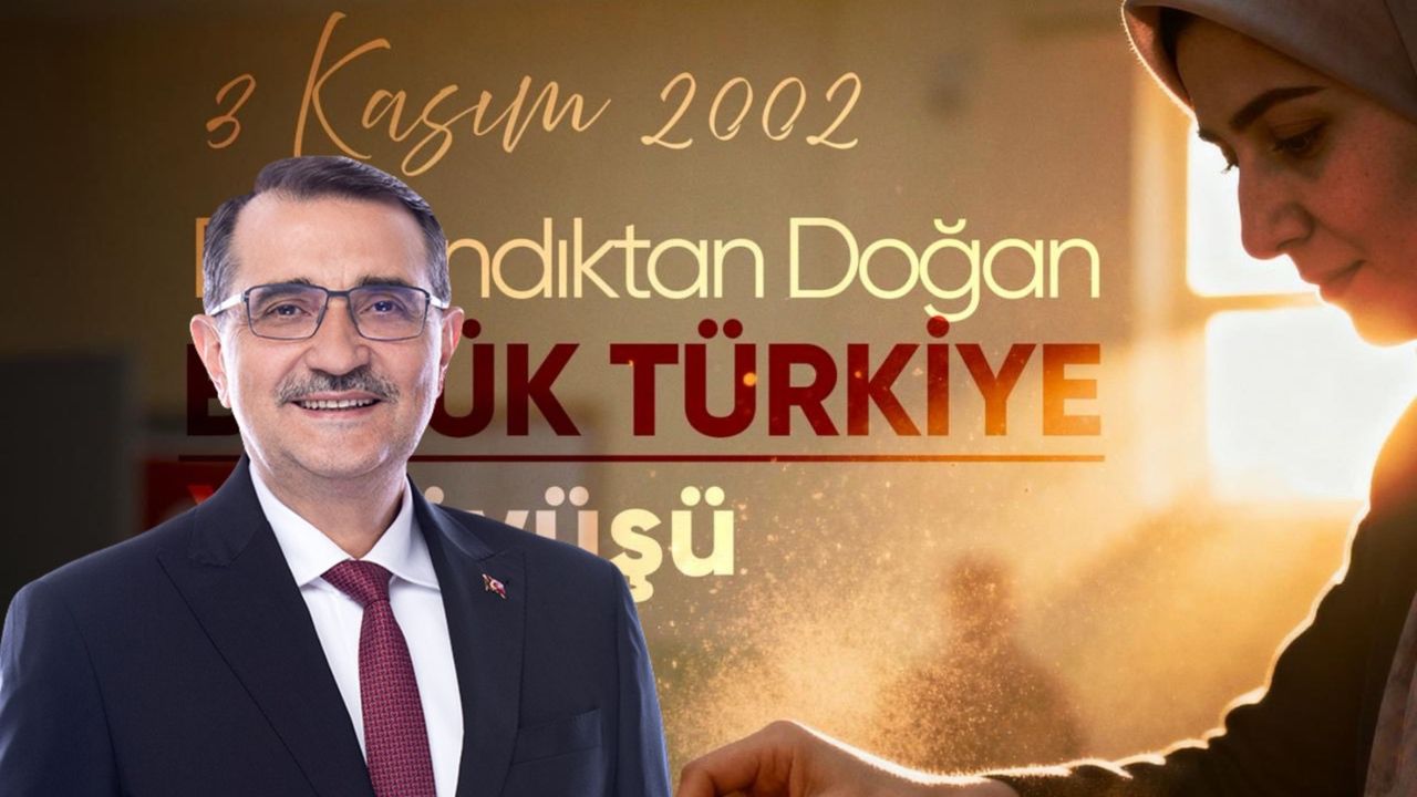 “3 Kasım 2002’de başlayan bu kutlu yürüyüş; ülkemizi büyüten, kalkındıran, dünya arenasında söz sahibi yapan tarihi bir dönüşümün adıdır. ‘Hiçbir şey eskisi gibi olmayacak’ kararlılığı, bugün Türkiye Yüzyılı vizyonu ile taçlanmaktadır.”