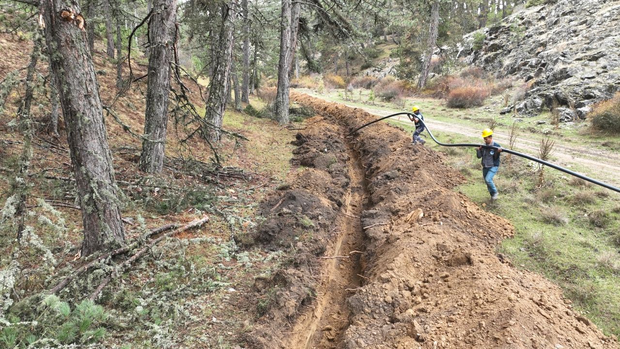 ESKİ ekiplerince yürütülen çalışma doğrultusunda mahallede tespit edilen yeni su kaynağında kaptaj işlemi yapıldı. Kaynaktan toplama deposuna ulaşan isale hattının imalatında 63 mm ve 75 mm çaplarında polietilen borular kullanıldı. Toplam 1.600 metre uzunluğundaki hatta yerleştirilen 500 litrelik maslak ile sistemin kontrolü ve su dağıtım kapasitesi güçlendirildi.